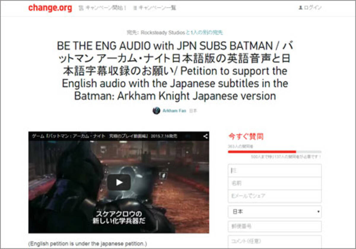 署名 はゲーム製作に影響を与えるのか バットマン アーカム ナイト 国内版をめぐる署名活動が話題に 15年5月28日 エキサイトニュース